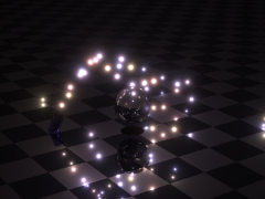 - displayed using the MegaPOV glow effect - are dragged towards the hole in